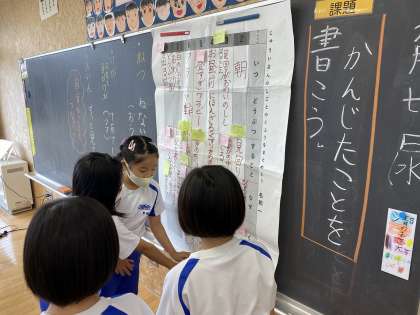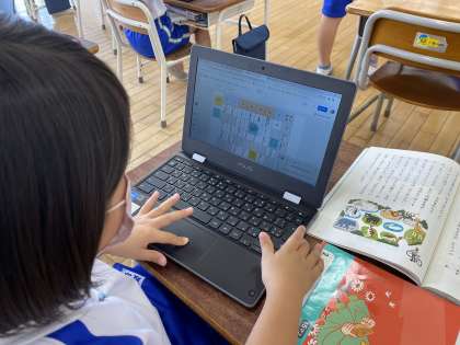 国語科「どうぶつ園のじゅうい」では獣医さんさんの仕事やその工夫をまとめる学習をしています。一番驚いたことや、もっと知りたいことなど感じたことをChromebookや付箋を使って書いていきました。それぞれ自分がやりやすい方を選んで考えを共有していました。