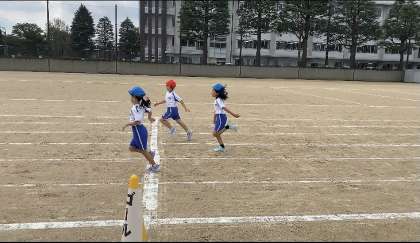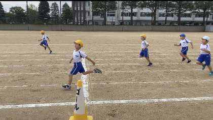 運動会にむけて50メートル走を行っています。本日は3回目の計測で、今日までの一番よい記録をもとにリレー選手を決めます。みんな自分の全力を尽くして走っていました。