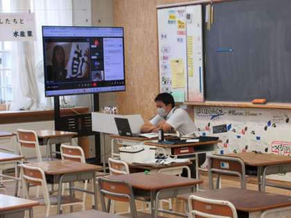 台風接近のため、今日はオンラインでの授業が行われました。クロームブックの画面を通しながらではありますが、集中して課題に取り組んだり、意見を交わしながら学習を深めたりしていました。