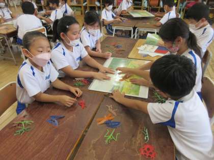 理科では、こん虫がどんなところをすみかにしているのか、これまでの経験を基にして話し合いました。えさがあるところや、隠れられるところなど、すみかを選んでいることが分かりました。