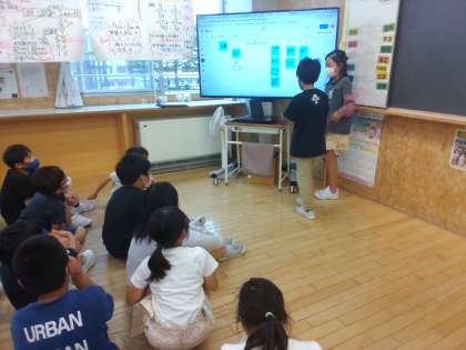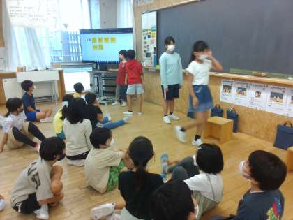 団体競技「シバ・タイフーン」は、3年生も行います。3年生にもコツを伝えるため、役割分担などについても話し合いました。