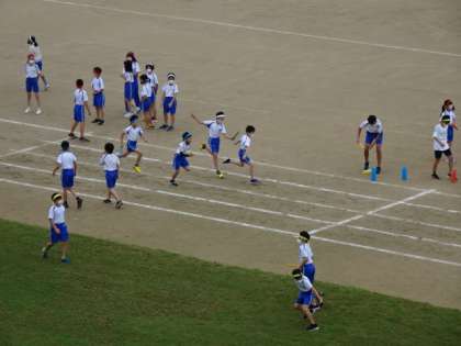 休み時間には、学年選手リレー練習がありました。今日は、オーバーゾーンに注意しながらバトンパスの練習をしました。