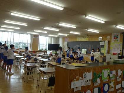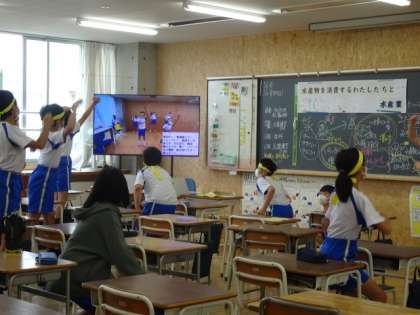 続けて、青団・黄団の様子です。6年生が用意してくれた動画を確認しながら一生懸命覚えていました。