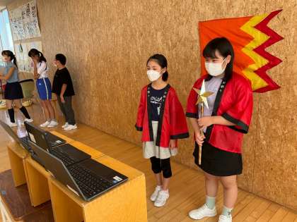 運動会を盛り上げようと、各学年の頑張りや応援の様子について放送する「炎の芝スポTV」が始まりました。今日は赤団と白団の応援を紹介したり、応援副団長から、応援のポイントを聞きました。