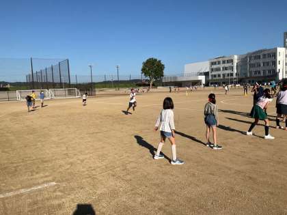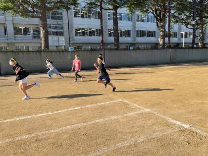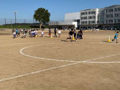 朝のトレーニングの時間にリレー練習をしました。「もうちょっと前のほうがいいんじゃない?」「行くよ!」と互いに声を掛け合いながら、頑張っていました。100メートル走の練習をしているメンバーからも「頑張って」と応援の声も聞こえてきました。互いに応援して励まし合いながら高め合っています。