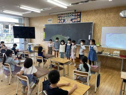 2組では、係活動に一生懸命取り組む姿がみられます。今日は自分たちで考えた遊びをみんなに楽しんでもらいました。みんなに楽しんでもらえるように司会の原稿や景品なども用意していました。
