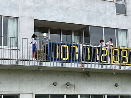 得点板やゴールテープの仕事でも活躍しています。団リーダーも団のみんなをまとめようと頑張っています。
