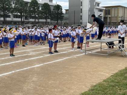 開会式と閉会式の練習も予行練習で行われました。真剣な雰囲気で取り組みました。