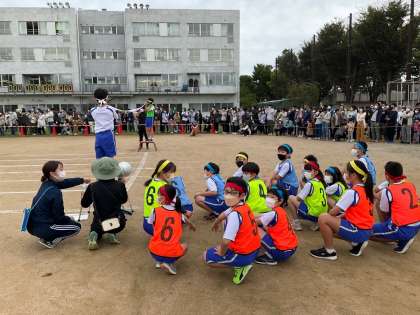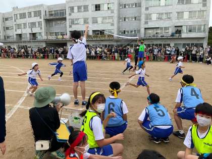 徒競走では、決勝や得点の仕事をしました。下学年に優しく声をかけています。