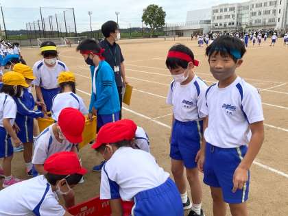 玉入れでは、玉を配ったり、玉を数えたりしました。団席からも元気な声援を送りました。