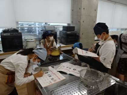 家庭科の学習では、ご飯を炊く調理実習を行いました。米が変化していく様子をよく観察しながら、ノートにまとめました。そして、おいしくいただきました。