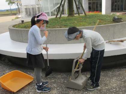 掃除の時間には、パサージュ担当の子供たちが落ち葉を掃いています。