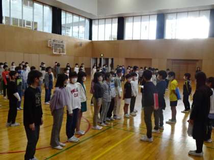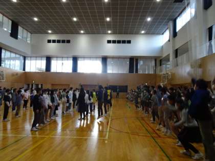 歌を披露した後、6年生の運動会団役員を中心に、代々受け継がれる運動会ファイルを受け取ったり、エールを送ってもらったりしました。