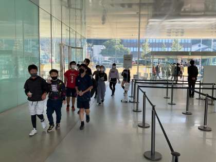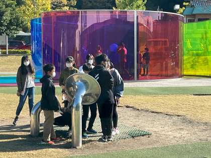 21世紀美術館の見学が始まりました。美術館のオープンまで少し時間があったので、外の作品を見学したり無料ゾーンを探索したりしました。
