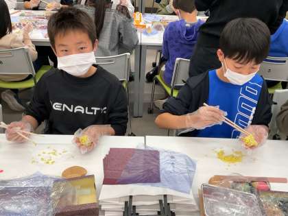 三品目は、裏ごしの作業も体験して、「晩菊」という作品をつくりました。
