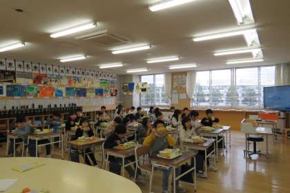 今日の給食のメニューに、「金時豆の煮豆」がありました。国語科で「すがたをかえる大豆」を学習している子供たちは、「豆だ!!」「大豆??」と話していました。