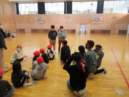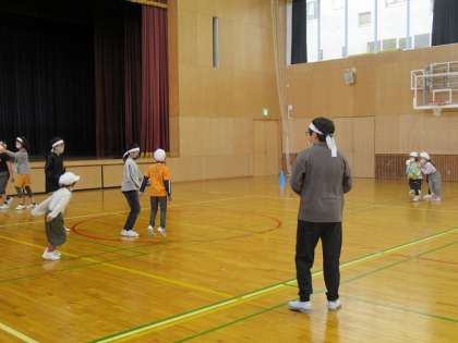 ドッジボール、おにごっこ、花いちもんめ、はんかち落とし等、団ごとに分かれて一緒に遊びました。6年生が優しくルールを教えてくれて、楽しく過ごすことができました。