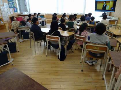 本日は「目」の大切さについて保健委員会が中心となって指導してくれました。〇×クイズや劇に子供たちも興味津々でした。「目は一度悪くなったら治らない」ということに驚いている子供たちがたくさんいました。これを機に自分のメディアの使い方を見直してみてもいいですね。