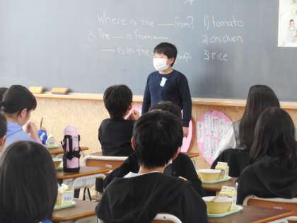 4年生は、総合的な学習の時間に環境について学んでいます。自分たちにできるエコ活動を考え、他学年にも協力してもらいながら取り組んでいます。他学年の教室でお知らせをするときは、やや緊張気味でした。