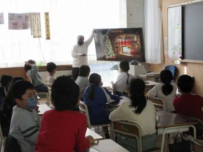 外国語活動の時間、ALTのダニエル先生にアメリカのクリスマスについて教えてもらいました。