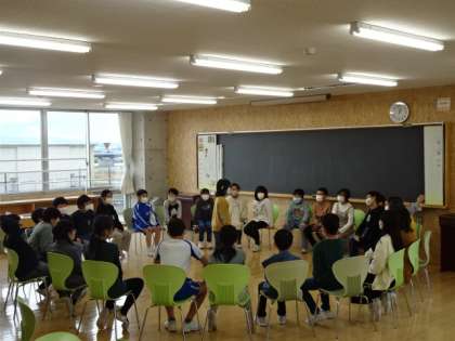 芝園タイムでは、久々に学級のみんなで遊びました。フルーツバスケットの様子です。短い時間でしたが、大いに盛り上がりました。