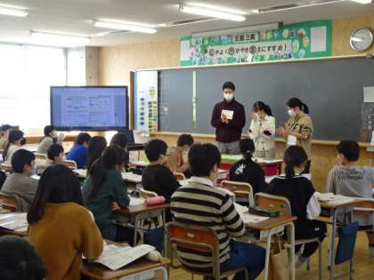 今日の外国語は、学生9名による授業でした。注文や金額の英語での伝え方について楽しく学ぶことができた子供たちでした。