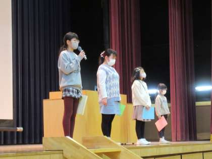 2学期の終業式は2,4,6年生が体育館で、1、3、5年生がライブ映像を教室のテレビ画面で見ながら、という形で行われました。「CHANGE(チェンジ)」は「CHANCE(チャンス)」という合い言葉とともに、新しい年を迎えてどんな自分を目指していきたいかを考えながら冬休みを過ごすことを校長先生と約束しました。そして、各学年の代表が2学期に頑張ったこと、成長したことを発表しました。互いの成長を認め合い、元気にあいさつを交わしながら学校を後にする子供たちの笑顔から、充実した2学期を送ったことが伝わってきました。