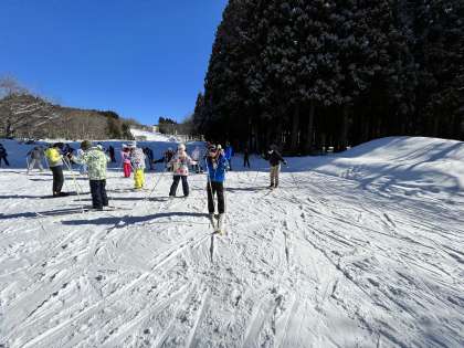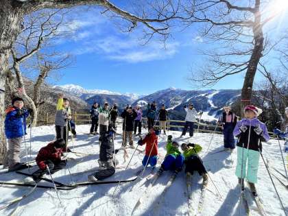 気持ちよく滑れるようになりました。立山連峰を背景に記念写真。