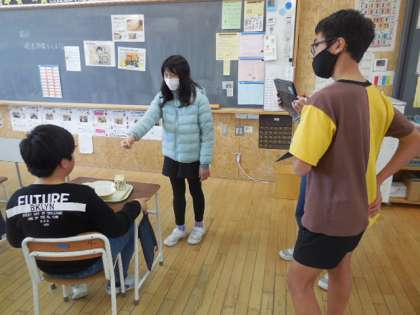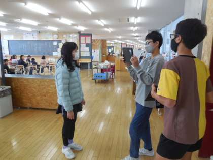 給食週間の取組として、給食委員会企画の「食を愛する人へのインタビュー」の動画撮影を行いました。今日は4年生の教室にお邪魔して、給食中の様子を撮影したり、インタビューをしたりしました。