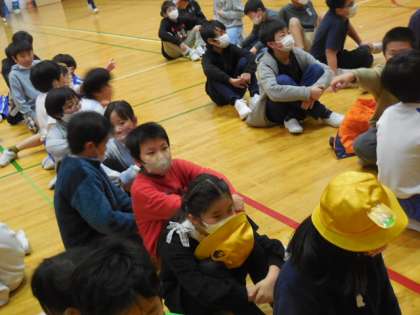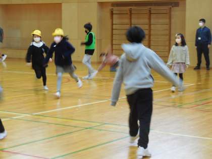 運動委員会が企画してくれた鬼ごっこに参加しました。今日は各学年1組の交流です。1年生から6年生までの代表が集まり、体育館を思いっきり走り回りました。