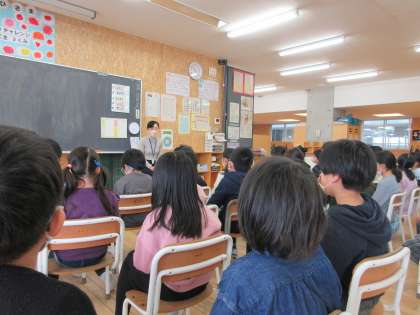 市立図書館の司書の方が、本の紹介と読み聞かせをしてくださいました。語りでは、「マーシャとくま」のお話を想像しながら楽しく聞きました。