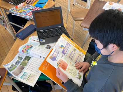 教科書や資料集、ゲストティーチャーの先生方から学んだことをもとに、「世界の人々と共に生きる」とはどういうことかについてテーマを決めて調べたり考えたりしました。