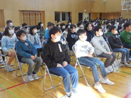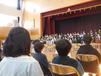 今日の卒業式予行に、4年生も参加させてもらいました。6年生のきりっとした顔で入場する姿や証書をもらう姿を見て、「かっこいい」「6年生みたいな高学年になりたい」と感想を述べていました。卒業式に参加はできないけれど、お祝いの気持ちを高めました。