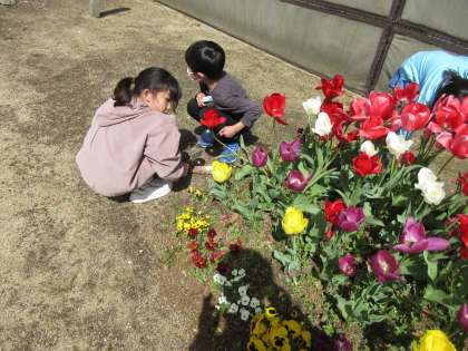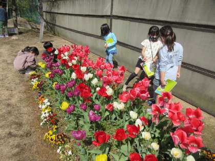 子供たちが楽しみにしていた理科の授業が始まりました。虫眼鏡をもって、グラウンドの周りの花壇や芝生で植物やこん虫を探しました。春の暖かな陽気に癒やされながら楽しく観察できました。