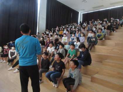 学年集会を行い、総合的な学習の時間のテーマについて話を聞きました。今年度のテーマは、「For the future 聞こえる未来からのありがとう〜わたしたちがつくる芝園の明日、ShibazonoDGs」です。一人一人が自分なりに課題をもって、主体的に学習を進めます。