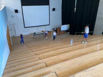 6年生は体育館や表現の舞台、図工室や玄関など、教室以外にも特別な掃除場所が任されています。どの場所も、全校のみんなが使う教室から離れた場所にあるところです。6年生だからこそ任されているということを意識して、全校のためにきれいにできるようにがんばります。
