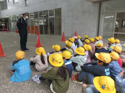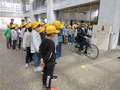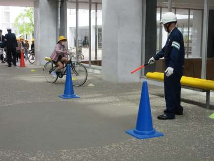 講話の後は、中央警察署の方々に教わりながら、実際に自転車に乗って、安全な乗り方を確認しました。乗る前の点検や乗降の仕方など、たくさんのことを学ぶことができました。