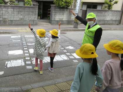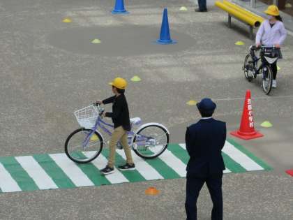実地練習を通して1年生は安全な歩き方を、4年生は自転車の乗り方を学ぶ交通安全教室が開かれました。警察署、交番の方々から交通ルールを教えていただき、交通指導員のみなさん、PTA役員のみなさんに見守られながら、大切な命を守るために安全に行動することを学びました。
