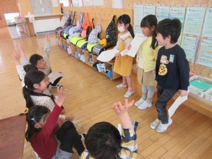 生活科「一年生となかよし」の学習では、1年生と一緒に学校探検をします。特別教室の使い方やおすすめポイントをクイズにして紹介しようと、アドバイスし合って準備や練習をしていました。お兄さんやお姉さんになって頑張ろうととてもはりきっています。
