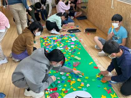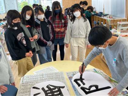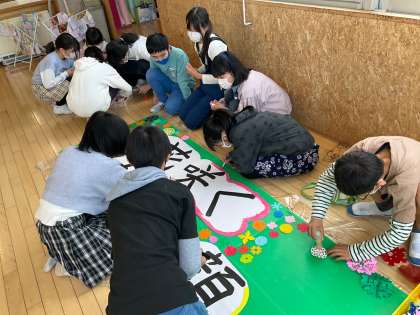 6年生は、全校のアンケートをもとに決めた児童会スローガンの発表に向けて準備をすすめています。折り紙で花をつくったり、習字で文字を書いたり自分の得意なことを活かして活躍しています。