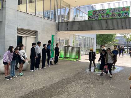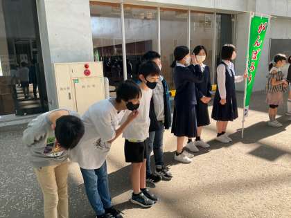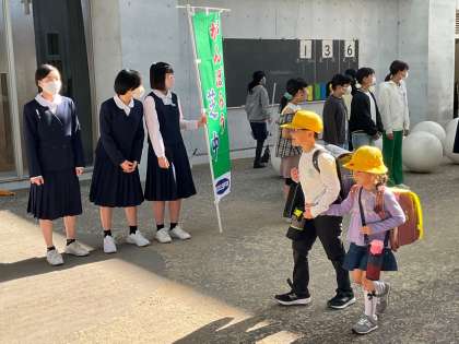 中学生と小学生で合同挨拶運動を行いました。さわやかな挨拶の声がパサージュに響きました。