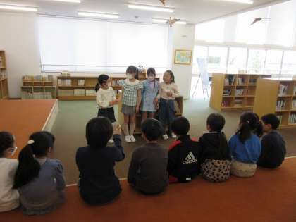 今日の学校探検は、2年生さんが体育館、プール室、図書室、グランドを案内し、クイズやゲームをしながらそれぞれの場所の使い方やきまりを教えてくれました。1年生は、2年生の説明をよく聞き、探検を楽しみました。「2年生さんみたいに学校のことをもっと知りたいな」とか「2年生さんと仲良くなれてうれしかった」と感想を述べるなど、2年生との交流を深める有意義な時間になりました。