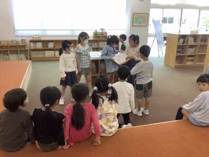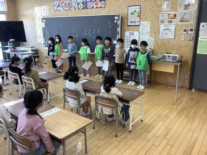 1年生の学校探検と合同で、2年生は1年生のために学校を案内しました。1年生を引率する人や、特別教室を紹介したりしました。全員台詞を暗記して、動作を交えながら説明する姿がとても素敵でした。