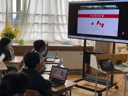 6年生は、G7のゲストの皆様と2年生の会食の間に、ランチタイムアトラクションを行い、おもてなしをすることになりました。どんなことを伝えるか、役割分担はどうするのか、4月の中旬から総合的な学習の時間を中心に準備を進めてきました。カナダ大使館からのオンライン授業に参加したり、G7に関する冊子を真剣に読んだりしていました。