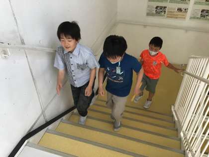 比例の学習を生かして、階段一段あたりの高さと、段数から芝園小学校の1階から4階までの高さを計算しました。