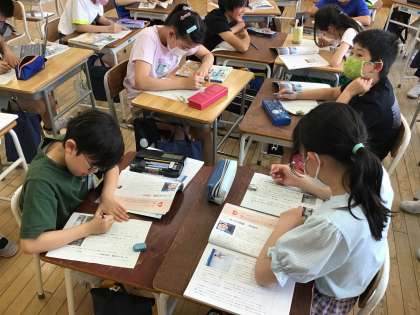 今日から、担任が隣のクラスで道徳を行う交換授業をスタートさせました。順番に担任がクラスを回っていきます。学年の担任みんなで子供たちを見ていきます。