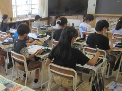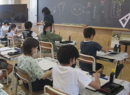 5年生の書写の学習では、字形と筆順の関係に気をつけながら練習をしています。一筆一筆丁寧に書いていました。