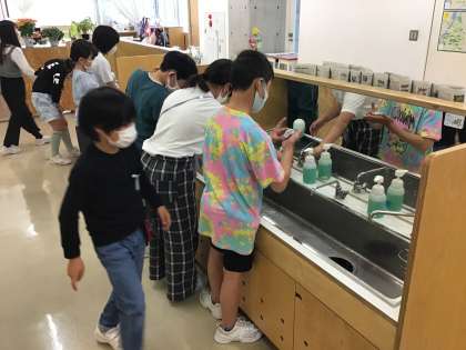 自分らしい表現方法で心を描いたあとは、責任をもってみんなで協力して片付けまで。