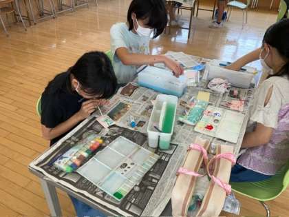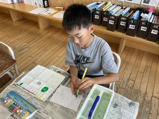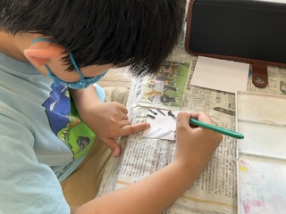 図画工作科の学習で心のもようを描いています。それぞれの表現方法で表しています。