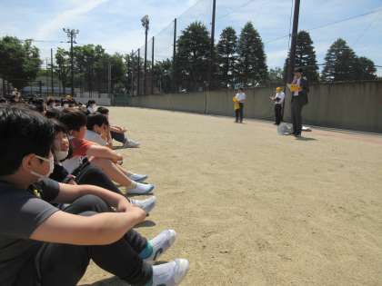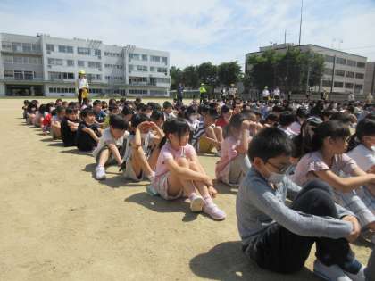 集団できちんと整列したり、階段歩行をしたり、顔をあげて先生の指示を聞いたりすることの大切さを理解して訓練にのぞんでいます。